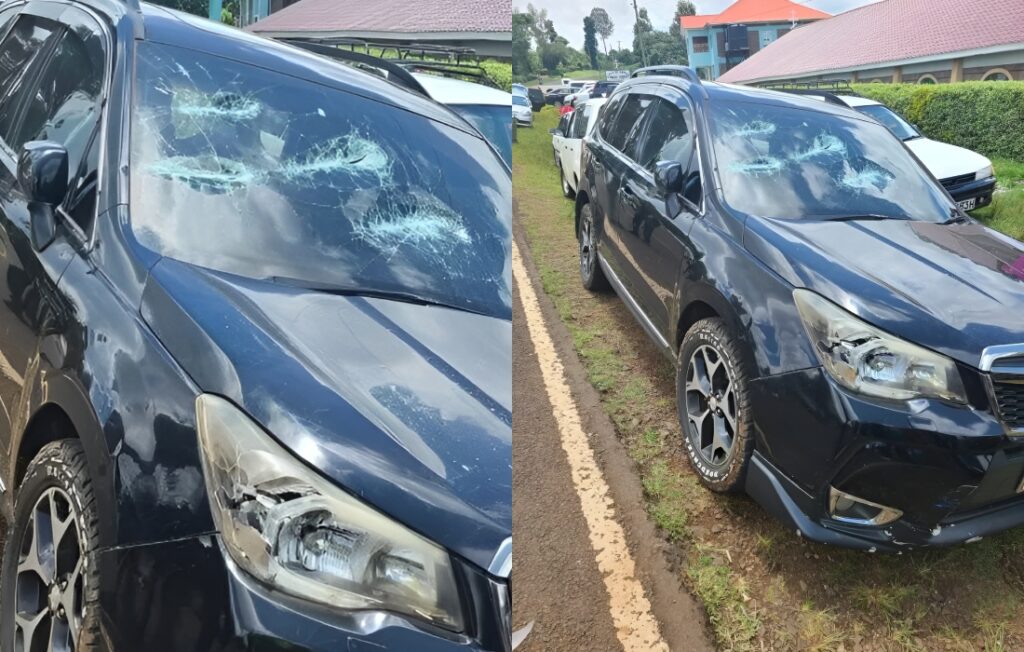 MCA Gichobe Mbatia’s car stoned while attending a church service in Murang’a. Photo: Courtesy.