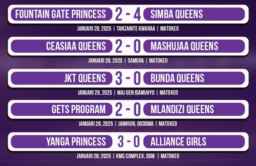 Tanzania Women’s Premier League midweek results.