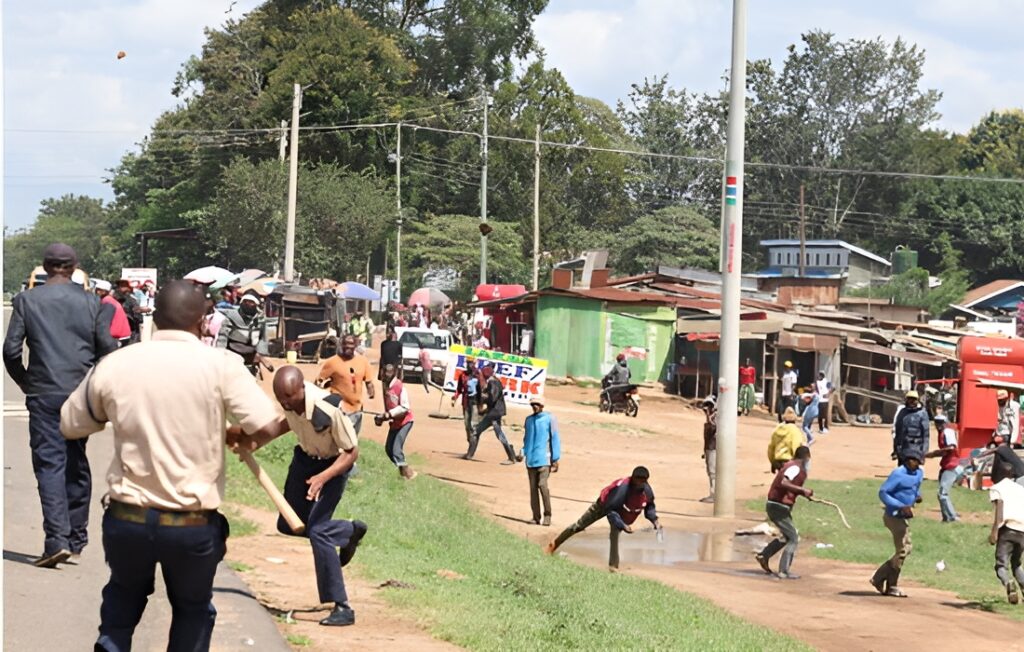 Chaos erupted in Thika on Sunday morning as goons engaged Kiambu County Government officials in running battles over a newly established market.