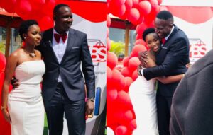 They arrived at the launching venue through a helicopter where Noela was dressed in a white elegant dress whereas YY Comedian was dressed in a black suit and a red tie.